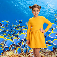 Kleita ar garām rokām, dzeltena.