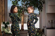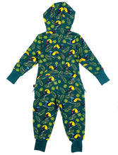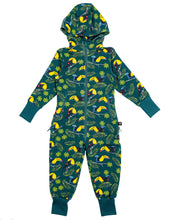 Kolekcijas "KOPĀ AR TUKĀNU" silts kombinezons ar putnu apdruku. Kombinezonam priekšā un aizmugurē iestrādāts divvirzienu rāvējslēdzējs ērtākai tualetes apmeklēšanai.